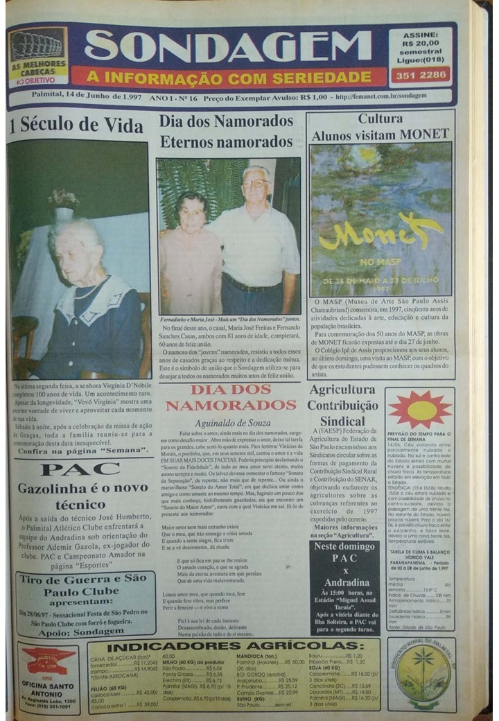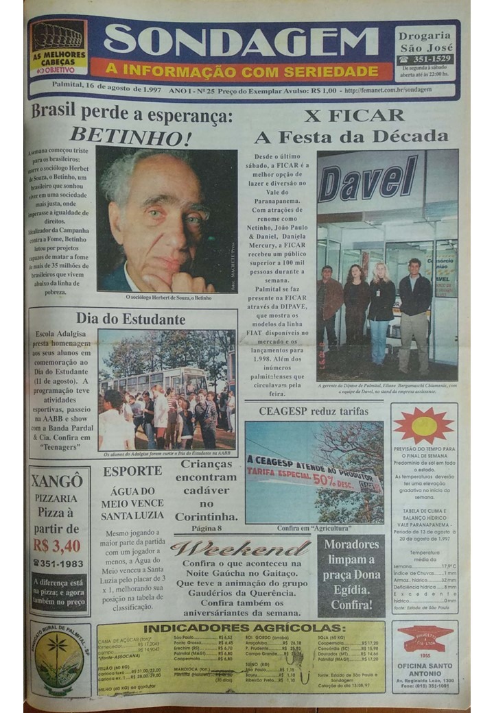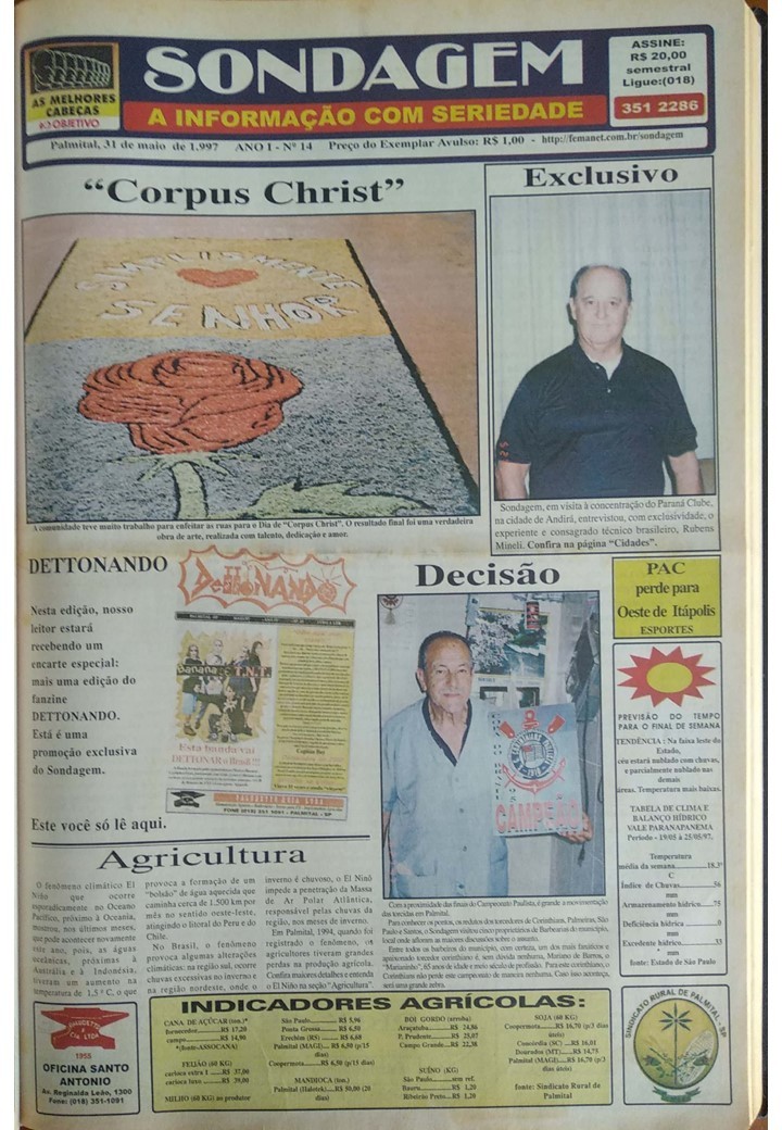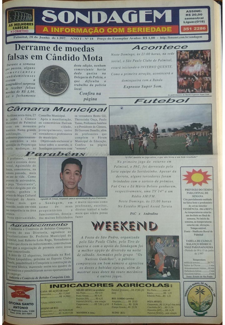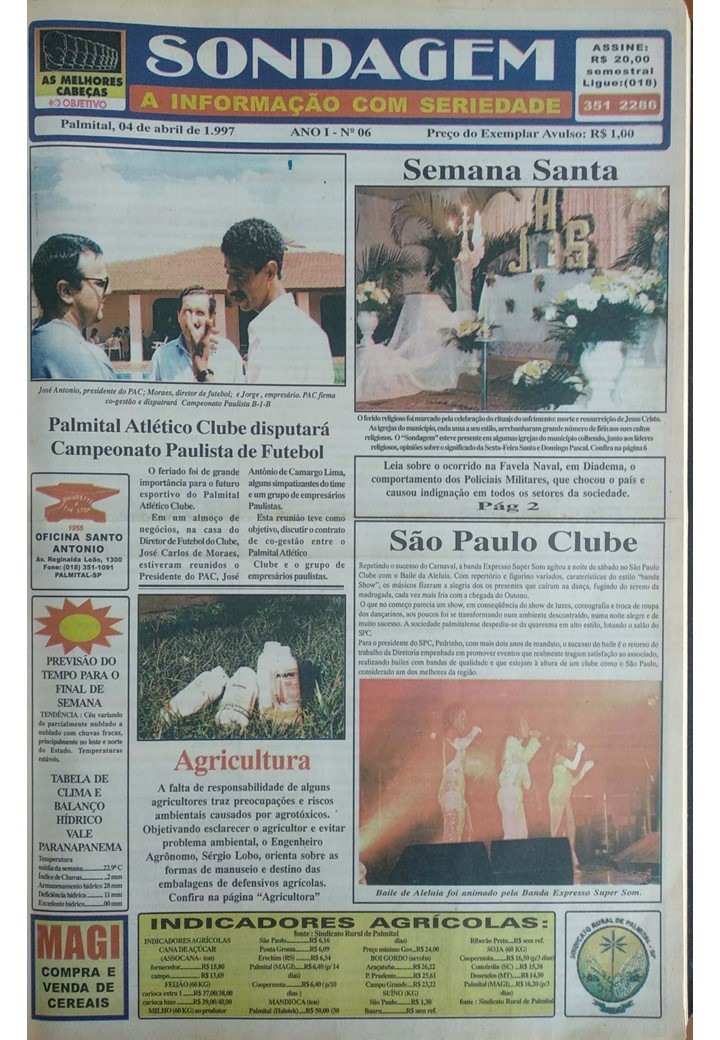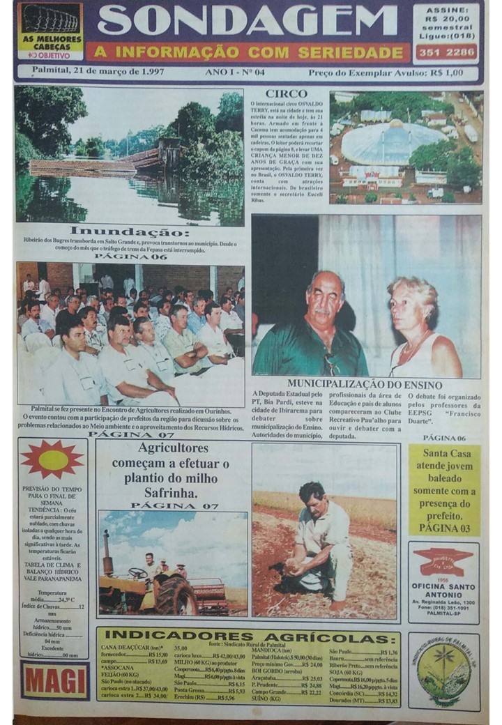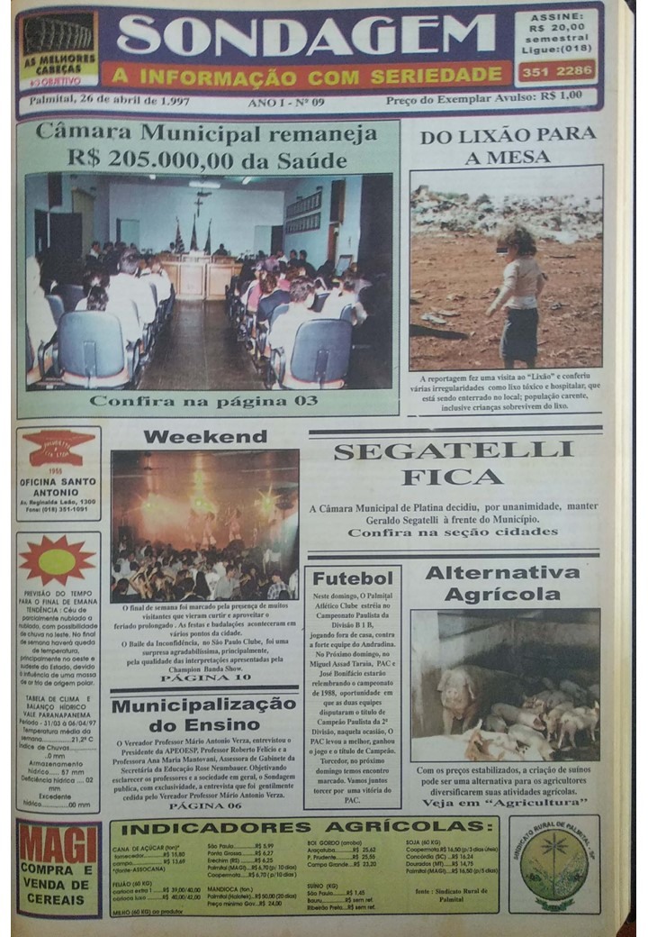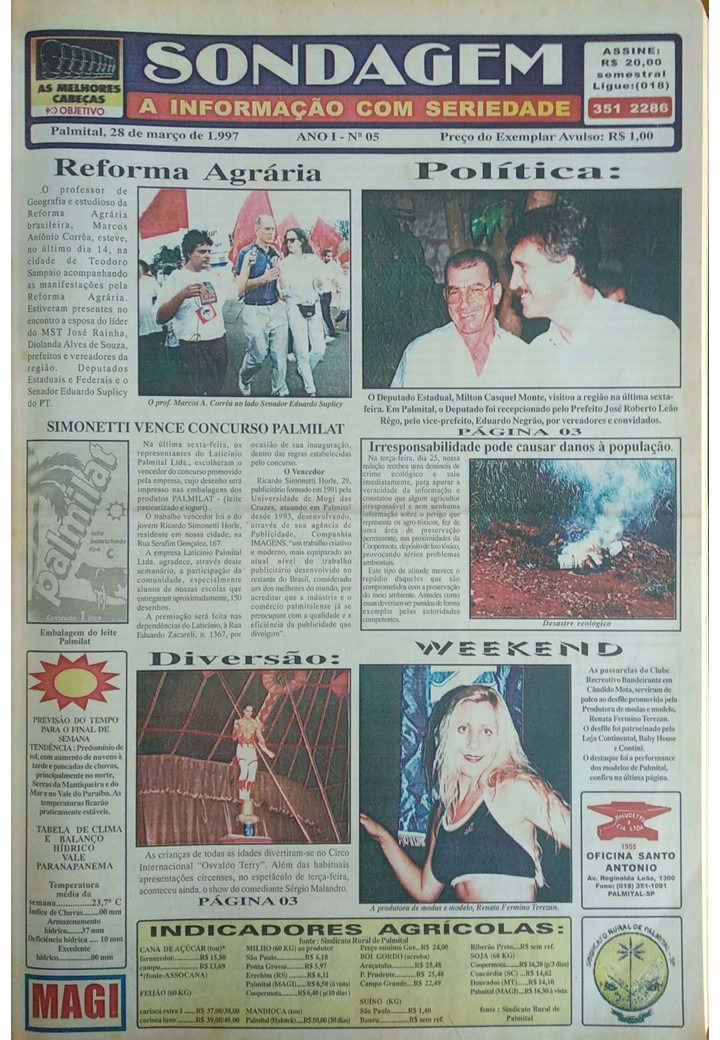 Eduardo Budini e Marcos Paludetto ficaram na direção do Sondagem por vinte e um meses, da primeira edição, publicada em 27/02/97, até 30/10/98, ocasião em que o semanário foi vendido.