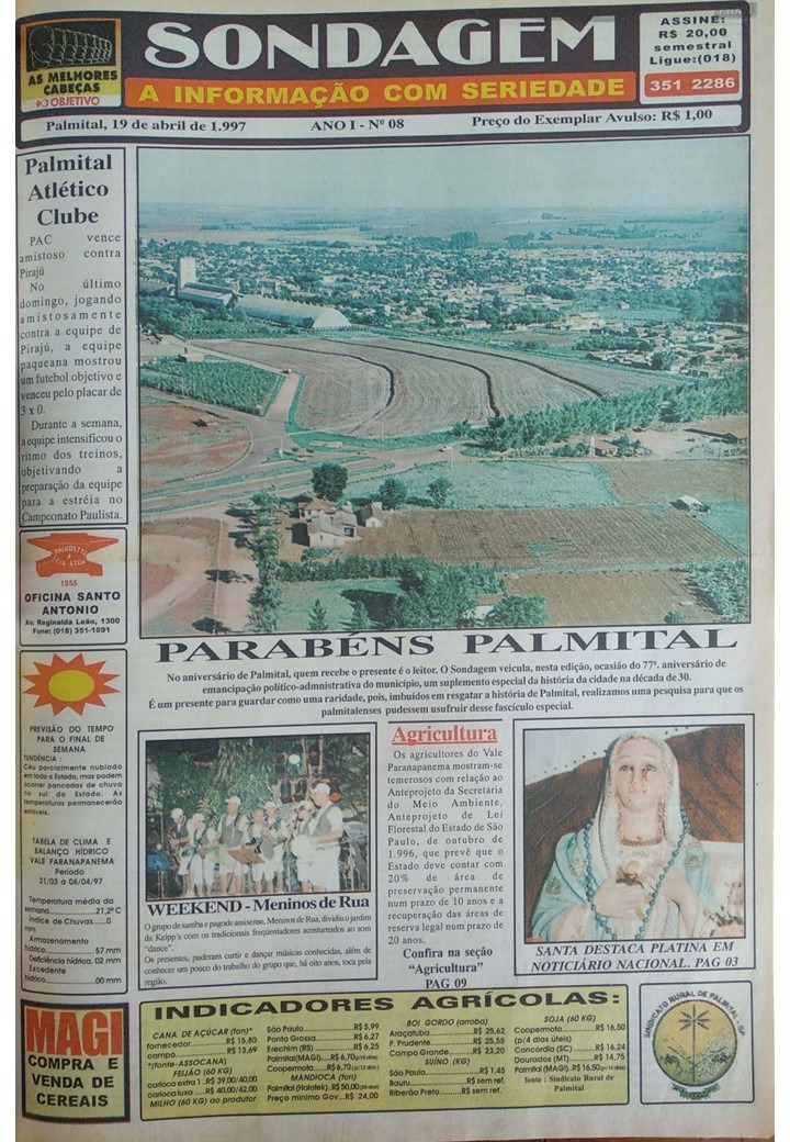 A primeira edição do Sondagem foi muito bem recebida pela população palmitalense. Em pesquisa realizada pelo próprio Sondagem, o público que teve acesso ao semanário elogiou as inovações que o mesmo trazia. O Sondagem foi o primeiro jornal do município a circular semanalmente com a primeira e a última páginas coloridas pelo sistema “off set”. o Semanário também foi o primeiro do Vale do Paranapanema a ter uma versão “on line”, em um época que a internet era uma novidade, o Sondagem era uma mídia de vanguarda em Palmital.