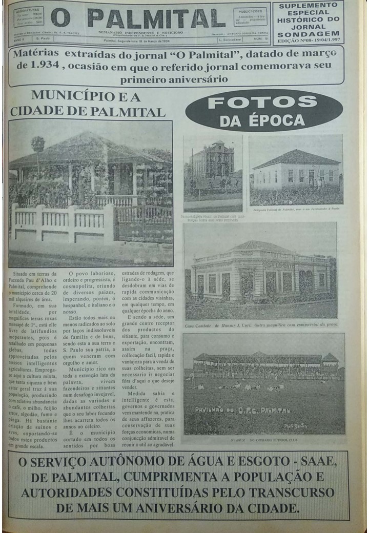 No início de janeiro de 1.997, o comerciante Eduardo Budini e o Professor Marcos Antônio Paludetto decidiram fazer um jornal de circulação semanal, que atendesse o Vale do Paranapanema, mais precisamente a cidade de Palmital. Budini possuía larga experiência no campo de Pesquisa de Opinião Pública como proprietário da “Empresa de Pesquisa e Opinião Pública Sondagem S/C Ltda”; o Professor Detto produziu o periódico “Dettonando”, fanzine voltado aos interesses juvenis. Houve também a colaboração intensa do jornalista Avelino Alves que, além de ajudar na definição das pautas jornalísticas da edição inaugural, escrevia crônicas que eram publicadas semanalmente.