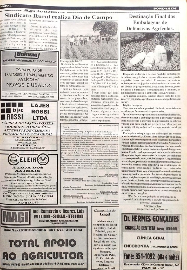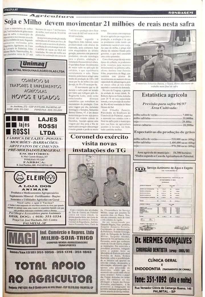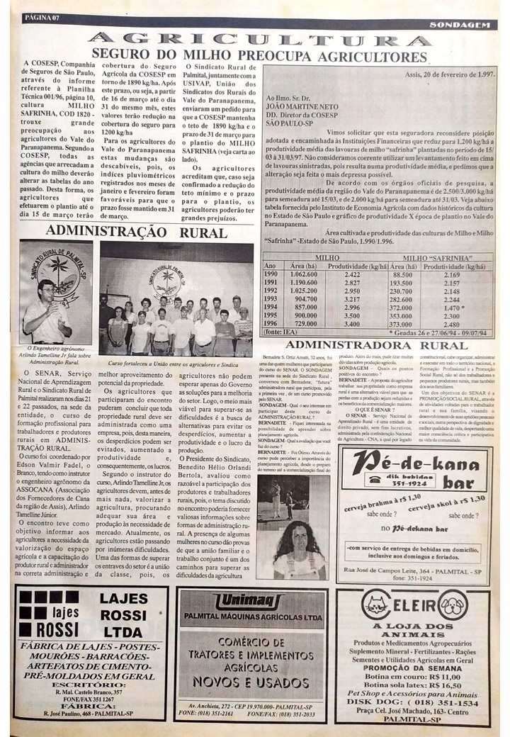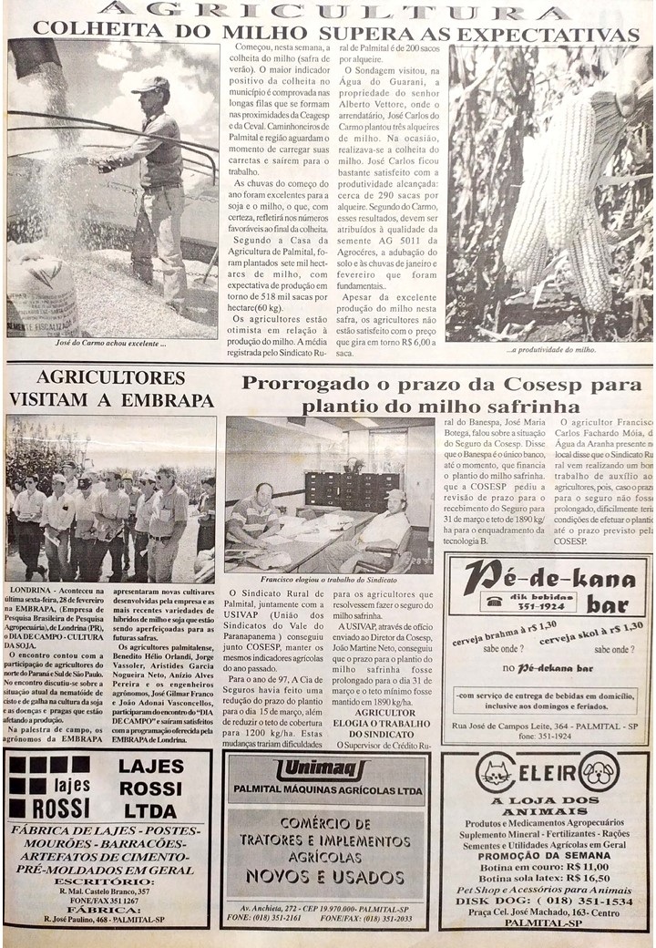 e cobertura jornalística do setor agrário de Palmital e do Vale do