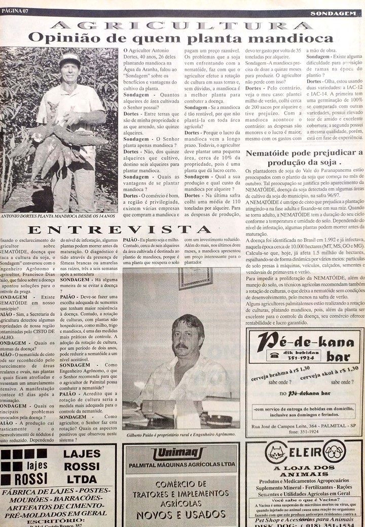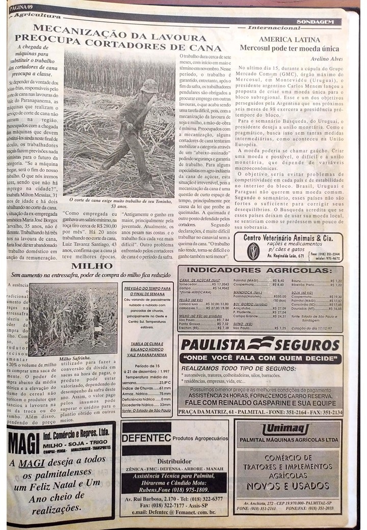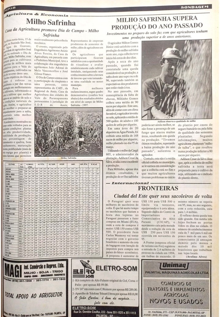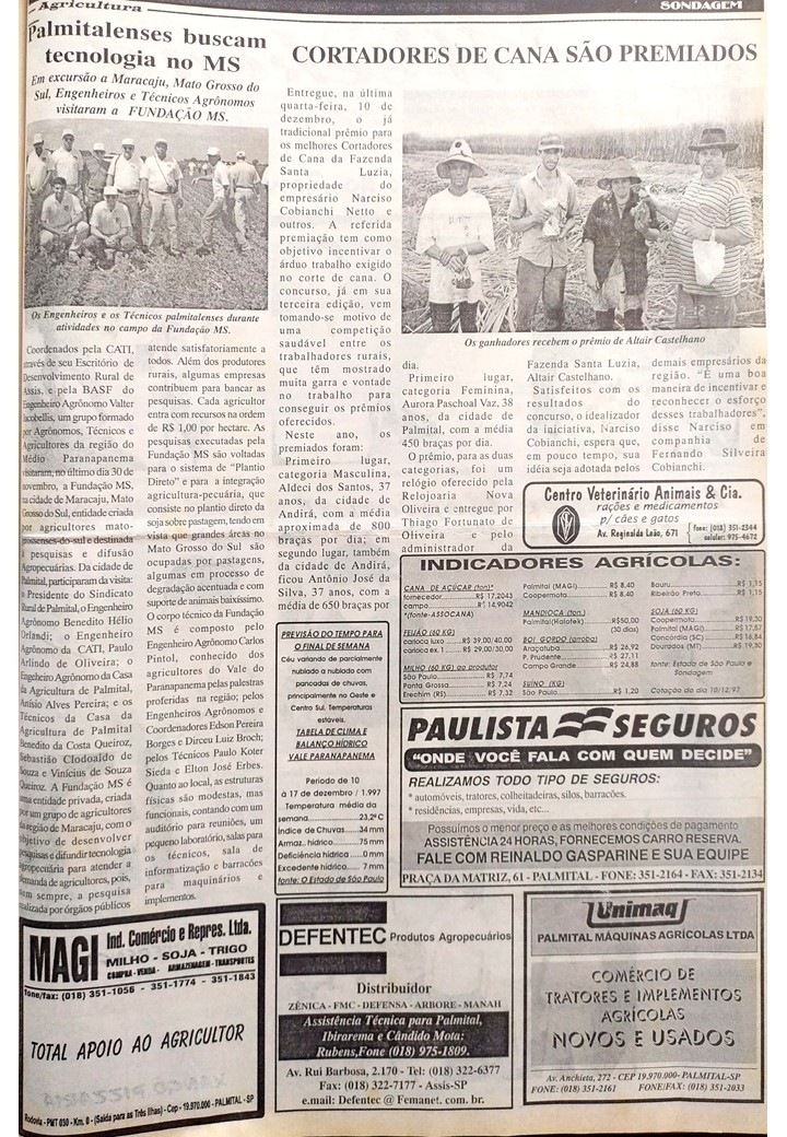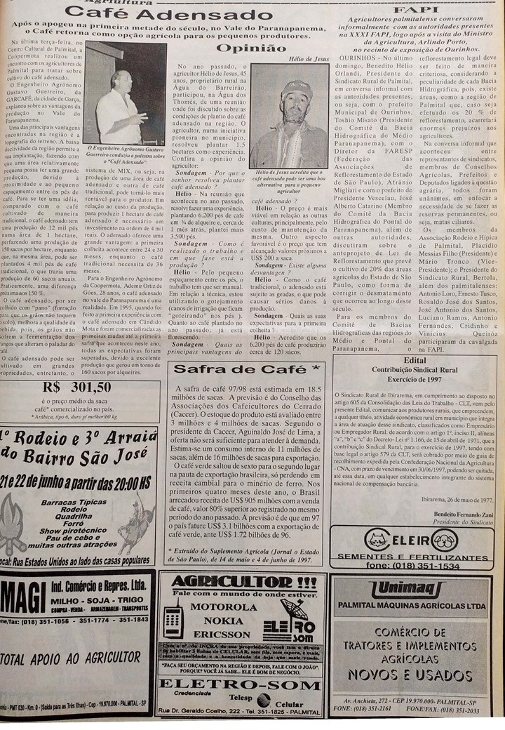 e cobertura jornalística do setor agrário de Palmital e do Vale do