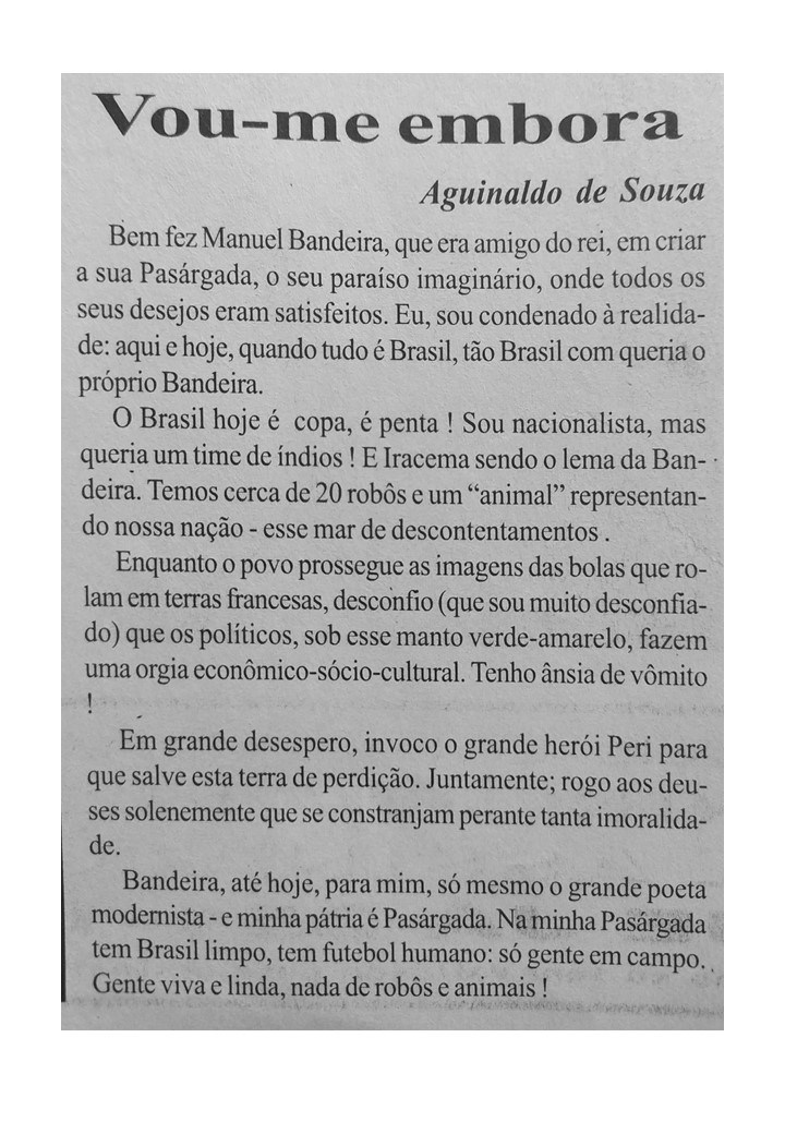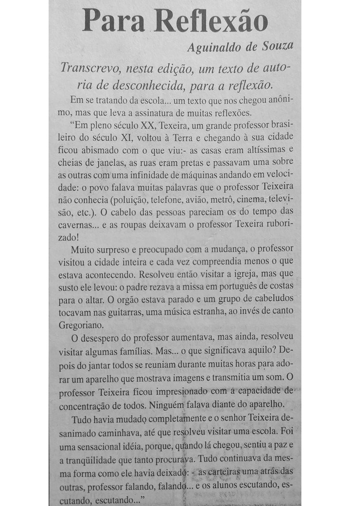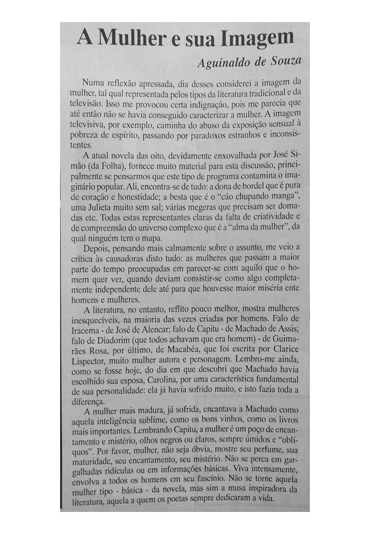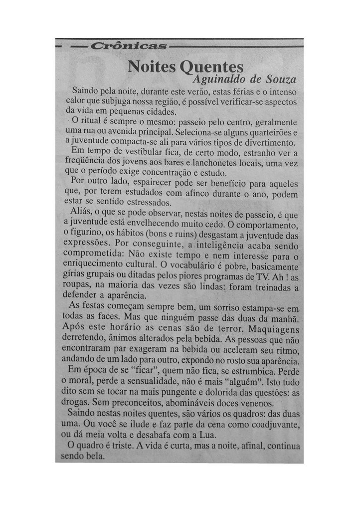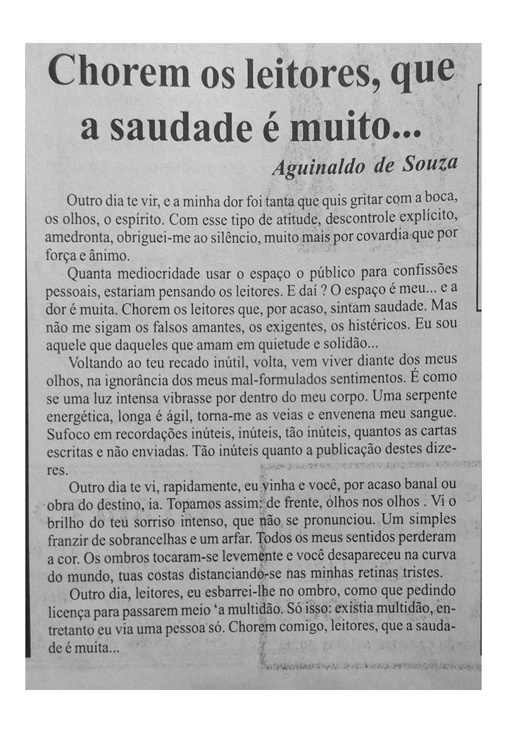 O professor e bailarino Aguinaldo Souza também foi colaborador do Jornal Sondagem. Suas crônicas revelavam o talento e a ousadia do cronista que se aventurava por busca de aventura