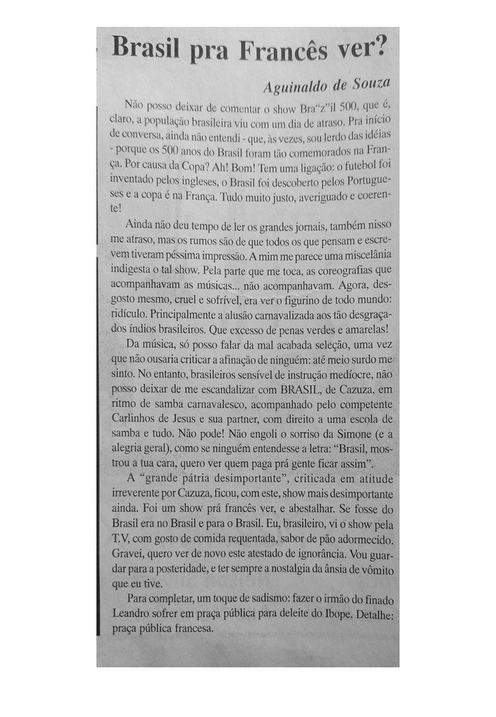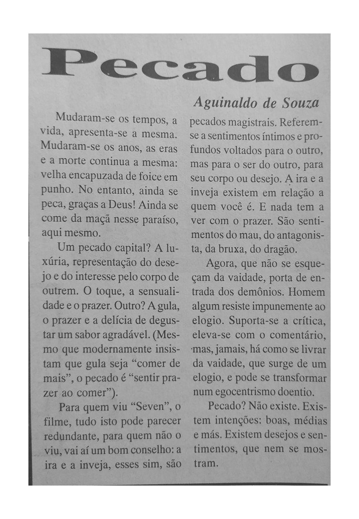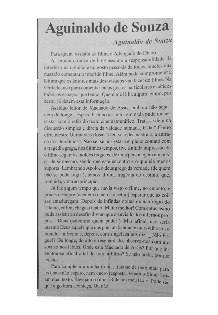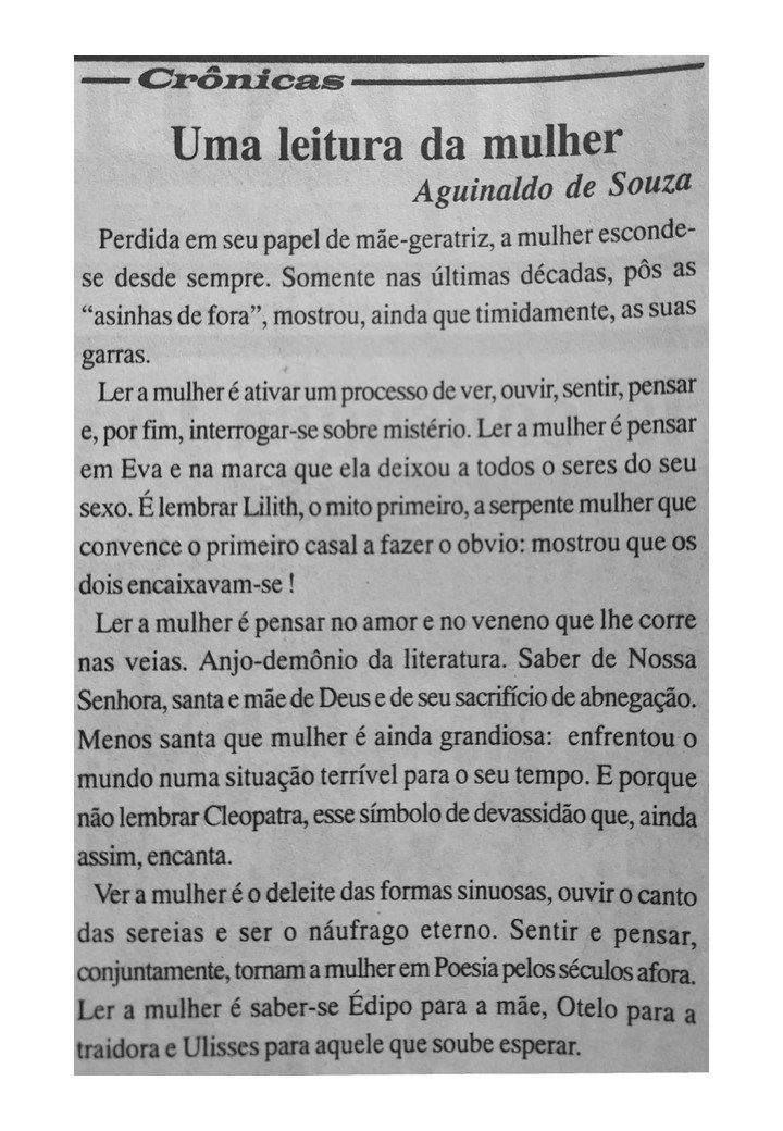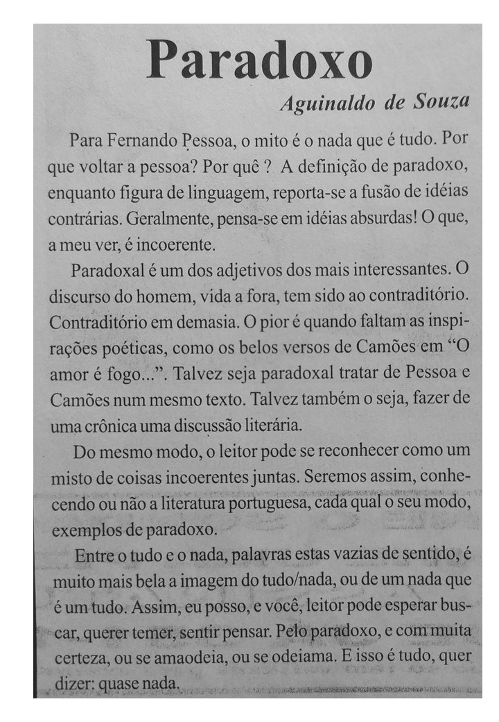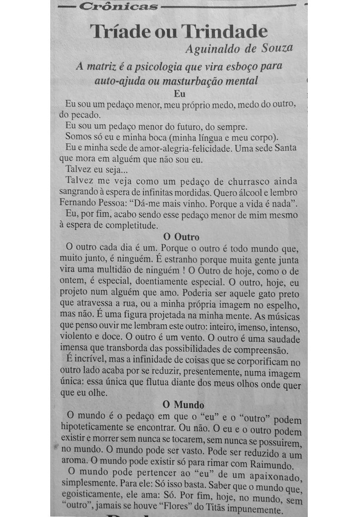 O professor e bailarino Aguinaldo Souza também foi colaborador do Jornal Sondagem. Suas crônicas revelavam o talento e a ousadia do cronista que se aventurava por busca de aventura